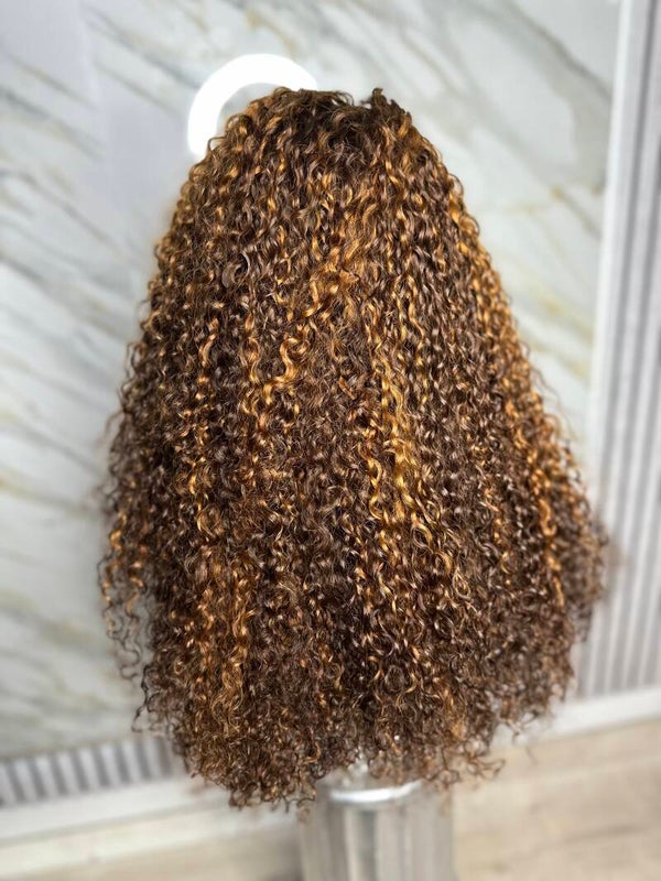 Brown Deep Curly with highlights