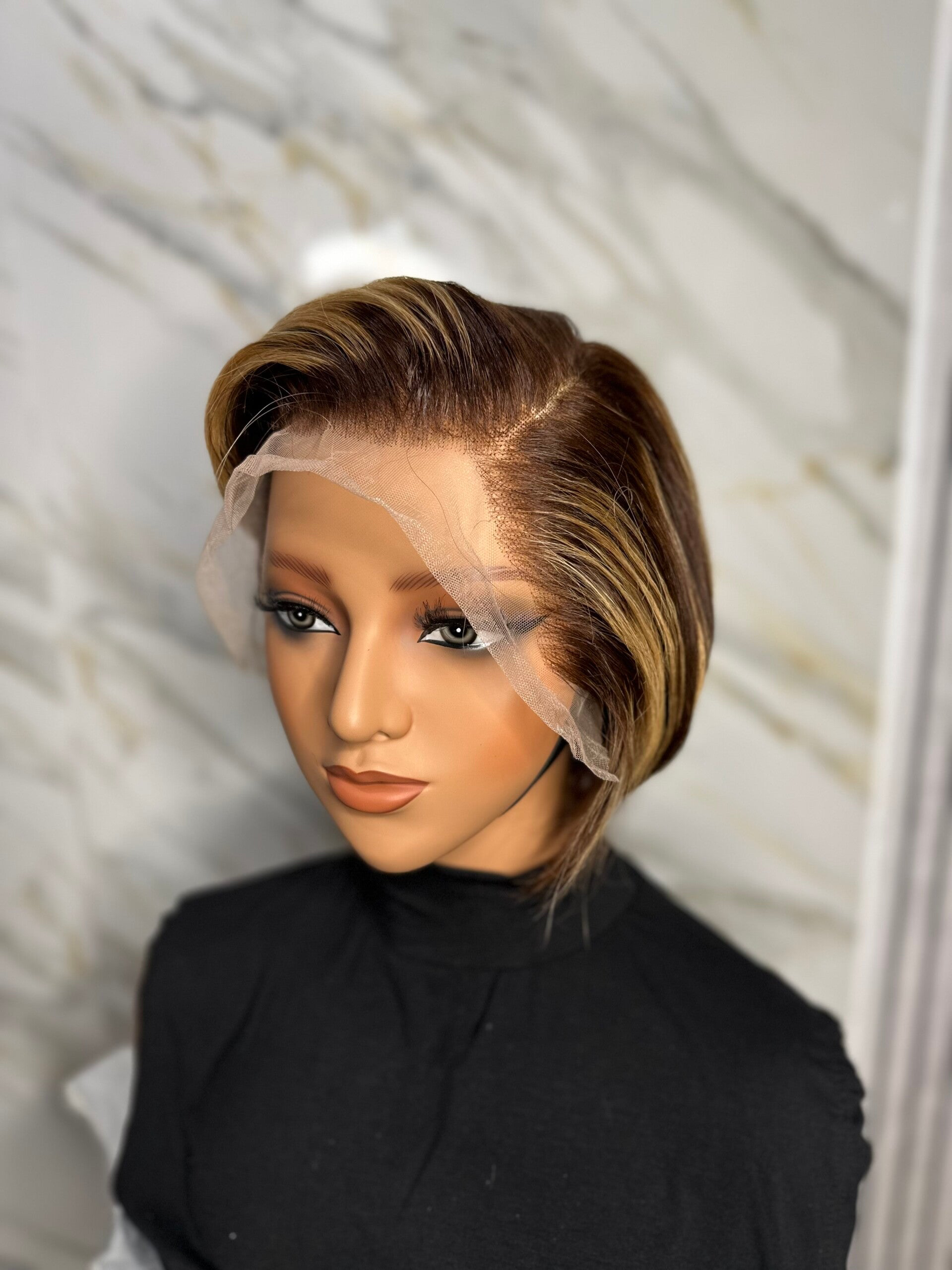 Donor natural brown Short wig with blonde highlights