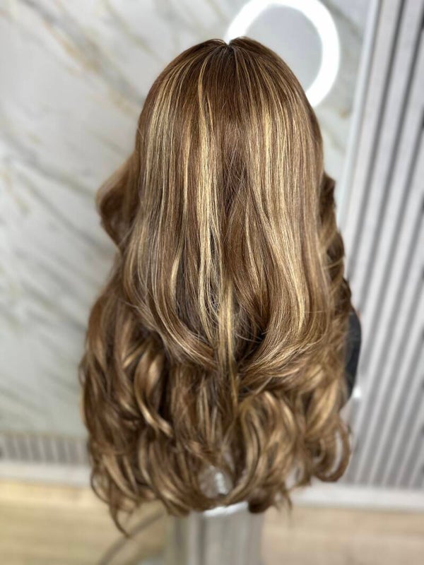 Highlighted Warm Brown and Honey Blonde Romance curls 20”