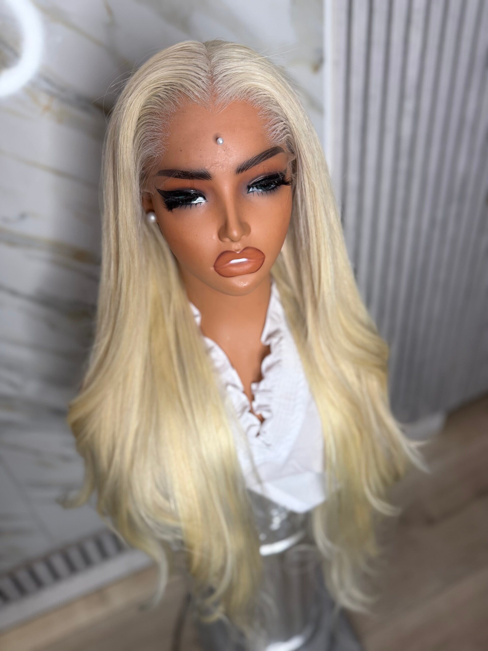 Wig info :Platinum Blonde with plucked Lagos hairline.