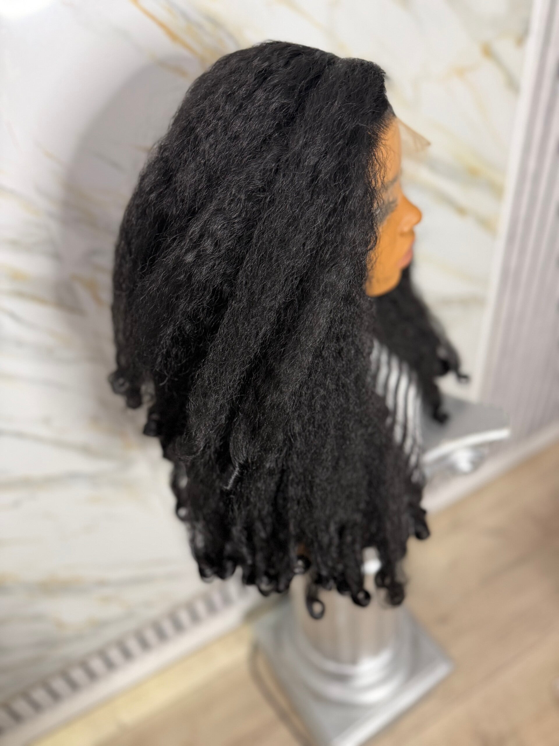Wig Name : Kinky Straight in Jet Black with Coily ends